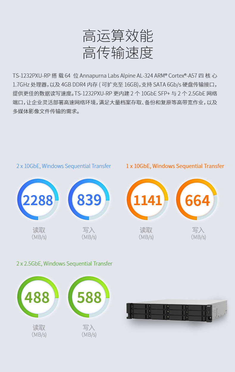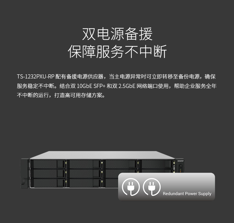 QNAP威联通TS-1232PXU-RP-4G十二盘位机架式双电源网络存储NAS - QNAP 威联通商城