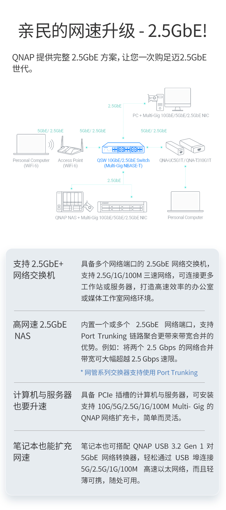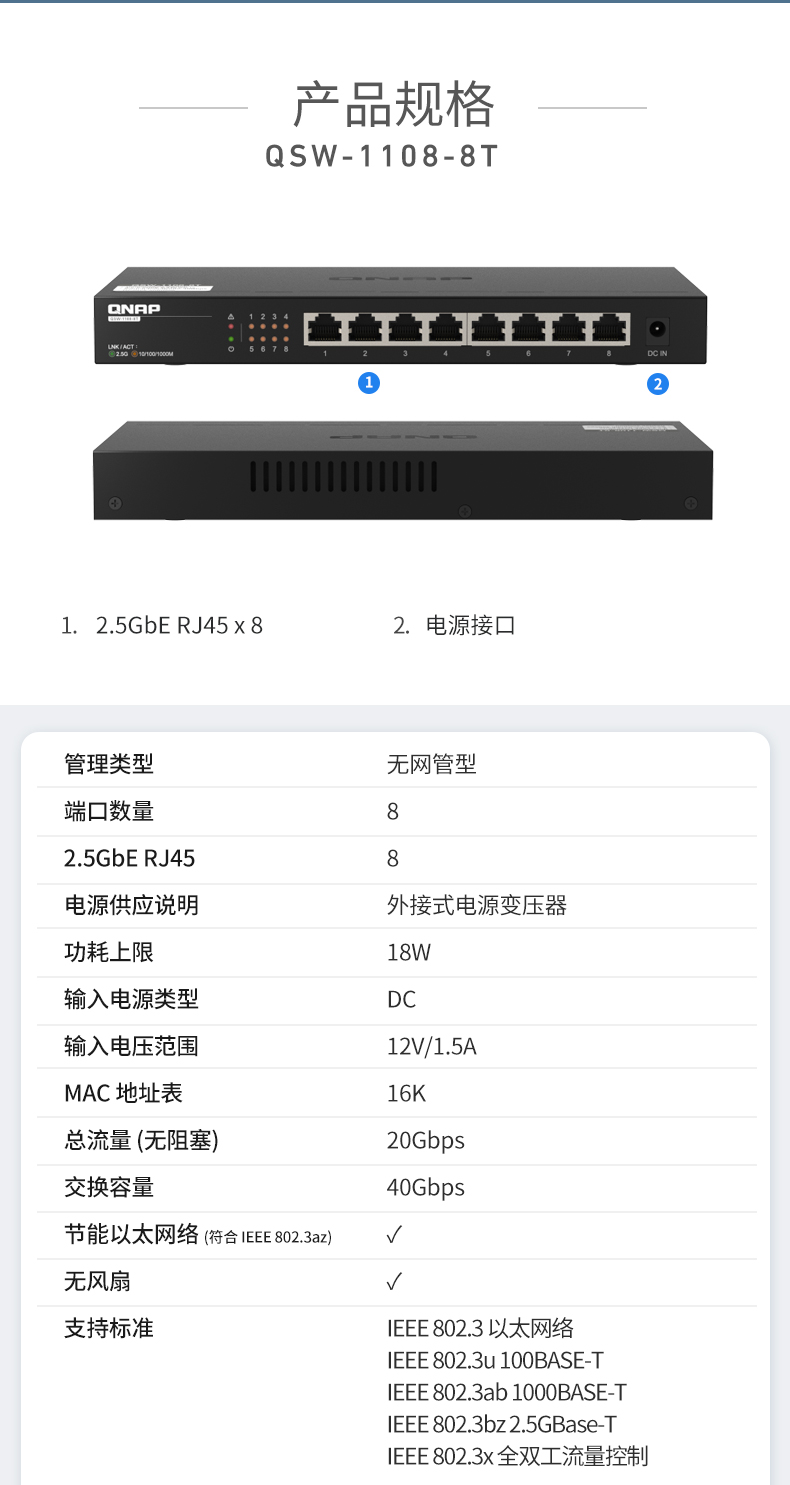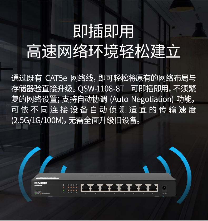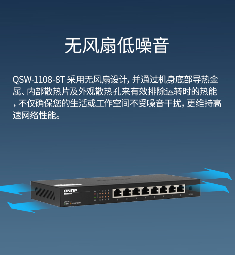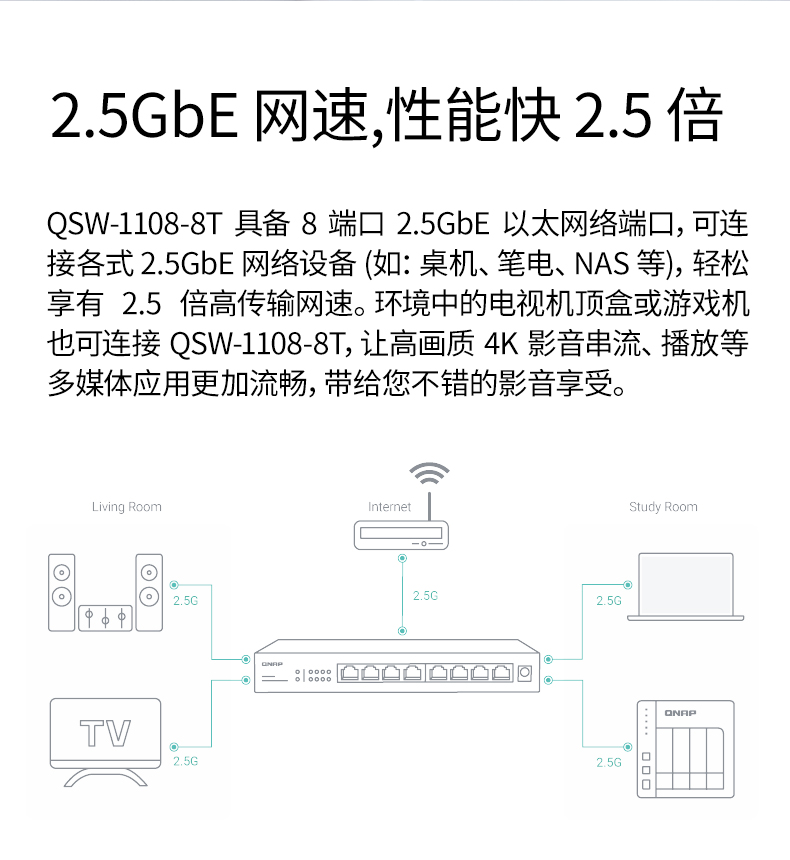QNAP威联通交换机 QSW-1108-8T 即插即用 8口 2.5G交换机 网络分线器
