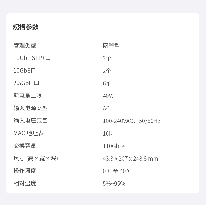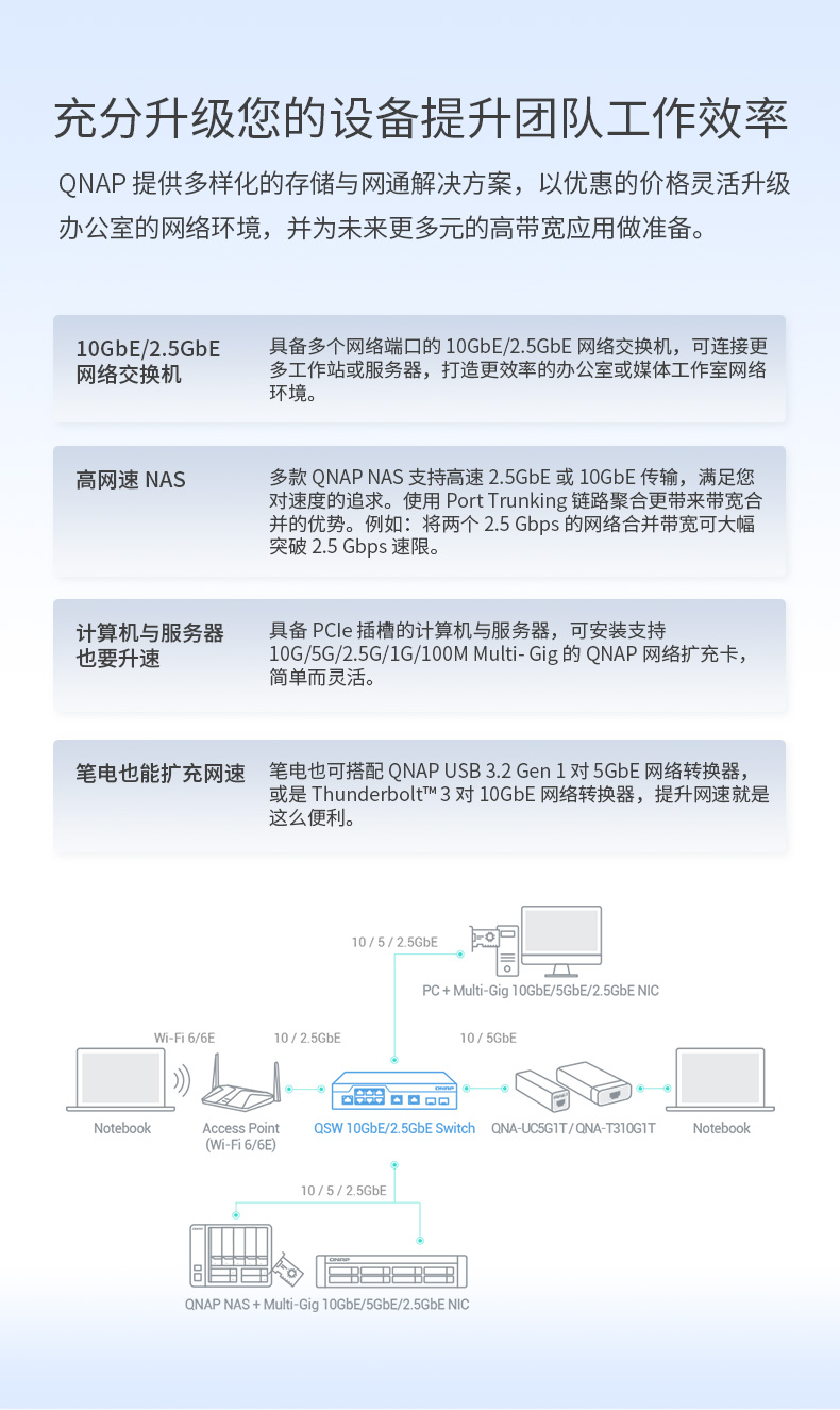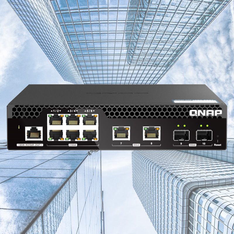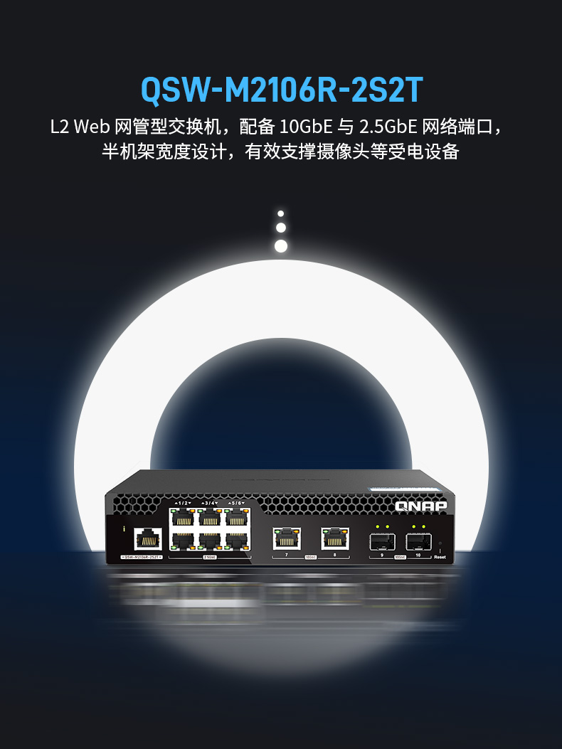 QNAP威联通交换机QSW-M2106R-2S2T L2 Web 网管型交换机,配备 10GbE 与 2.5GbE 网络端口