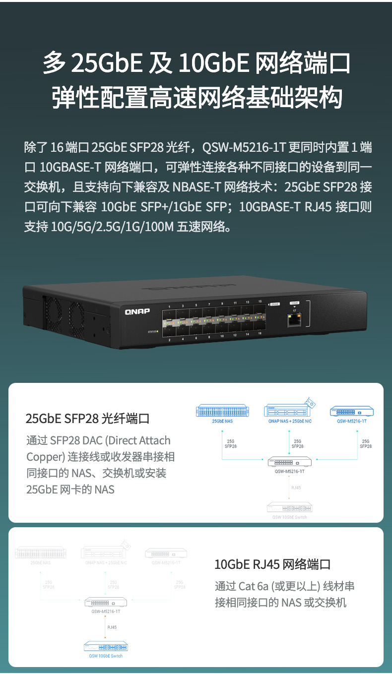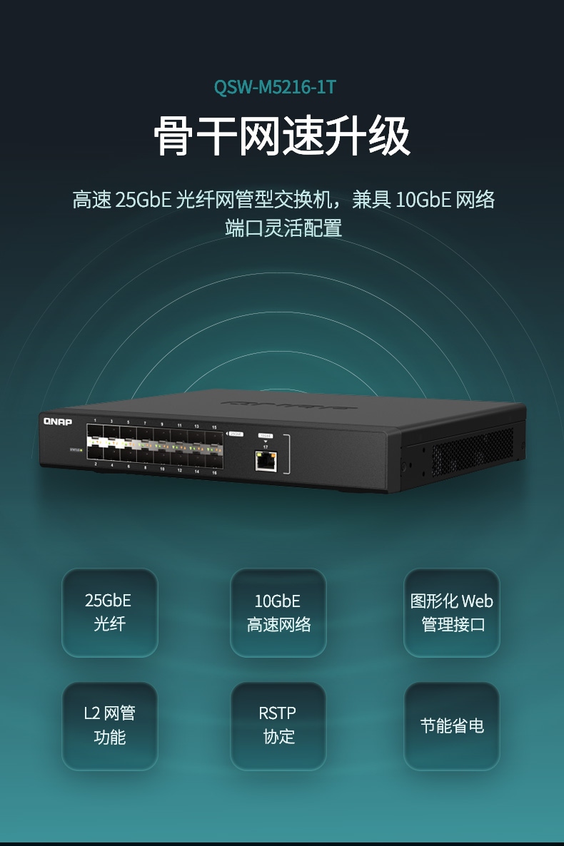 QNAP威联通交换机 QSW-M5216-1T高速 25GbE 光纤网管型交换机,兼具 10GbE 网络端口灵活配置 - QNAP 威联通商城