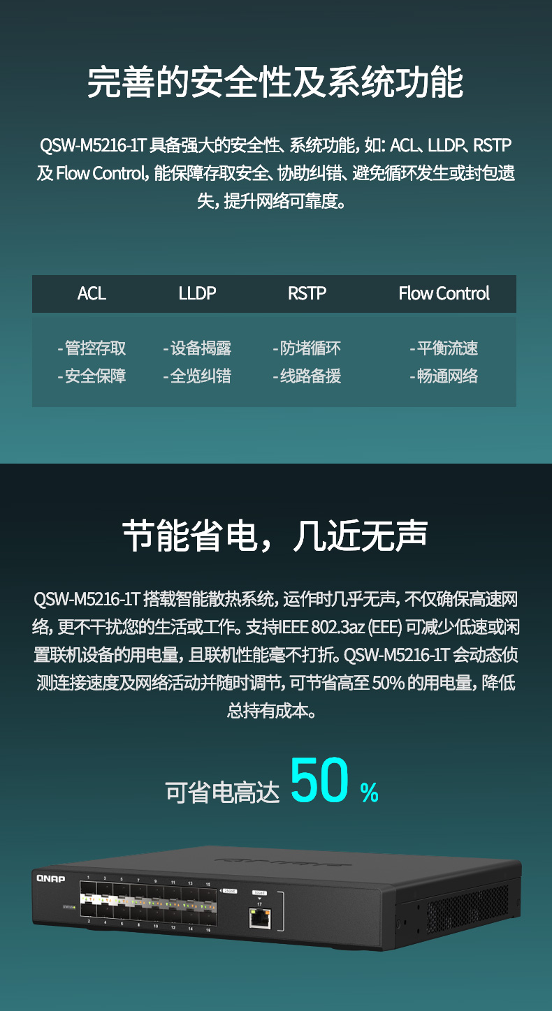 QNAP威联通交换机 QSW-M5216-1T高速 25GbE 光纤网管型交换机,兼具 10GbE 网络端口灵活配置