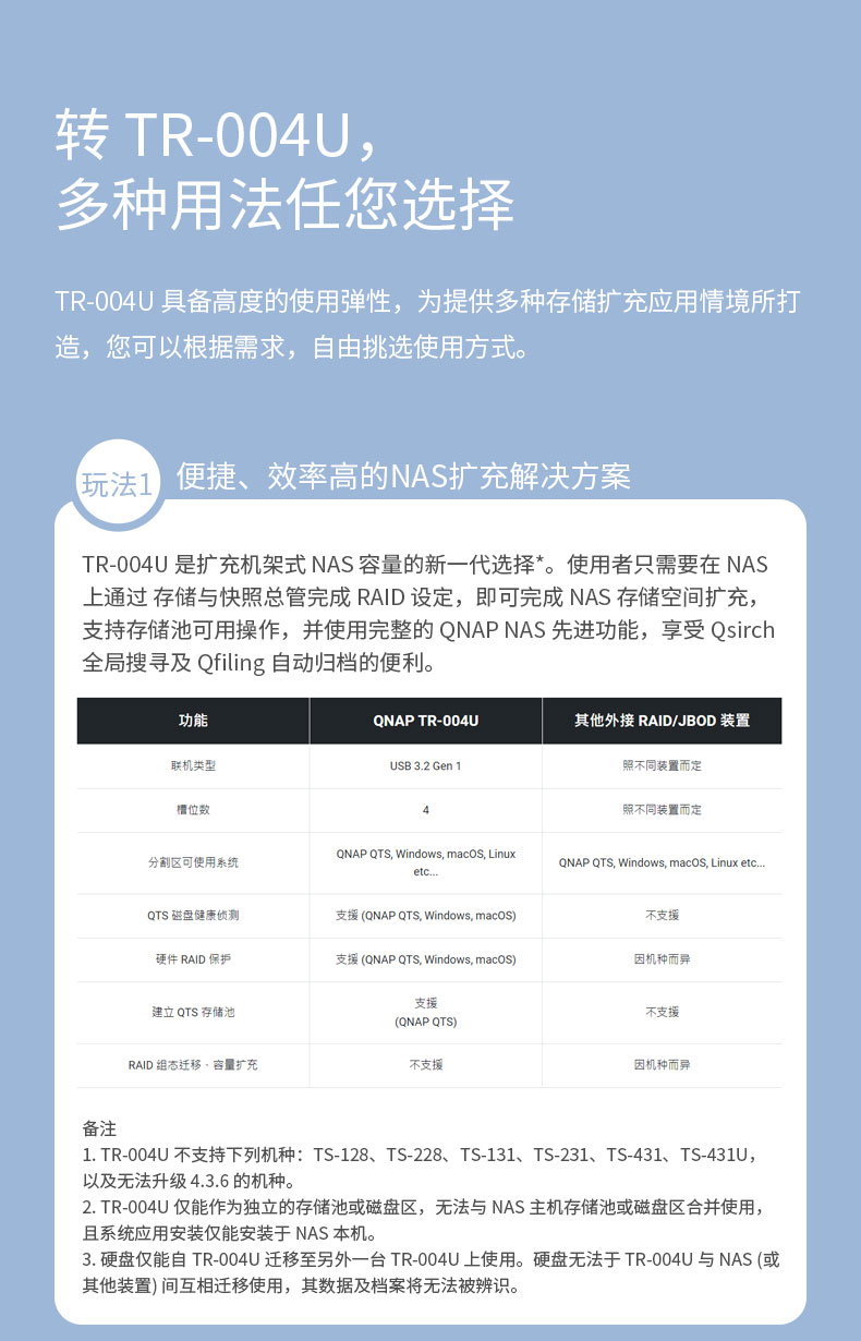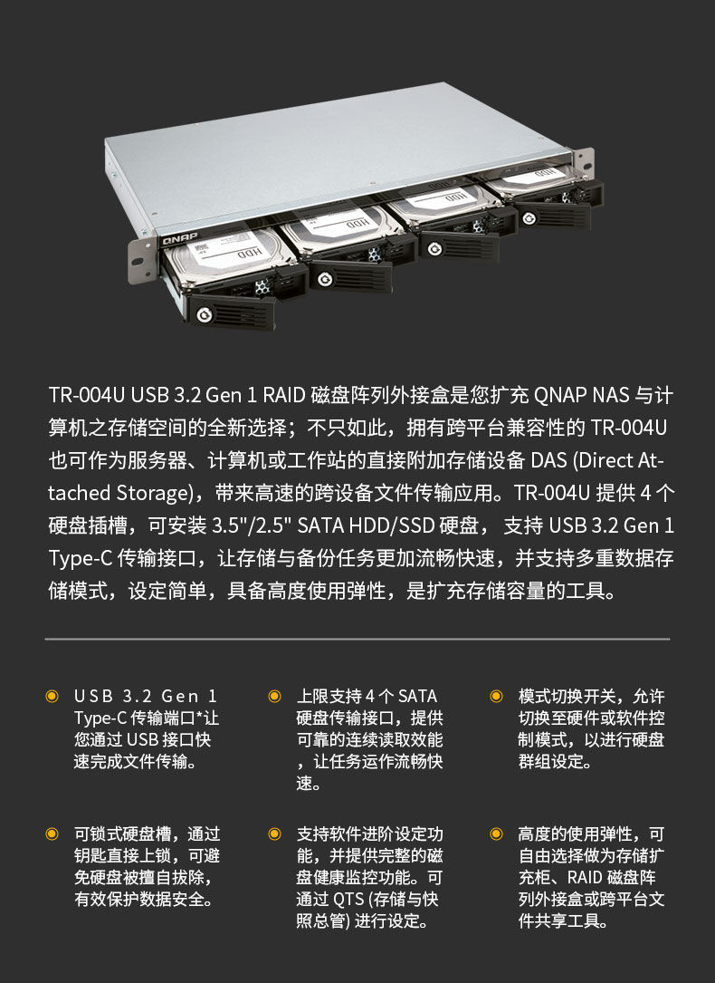 QNAP 威联通 TR-004U 机架式 4盘位USB 3.2 Gen 1 RAID 磁盘阵列外接盒 - QNAP 威联通商城
