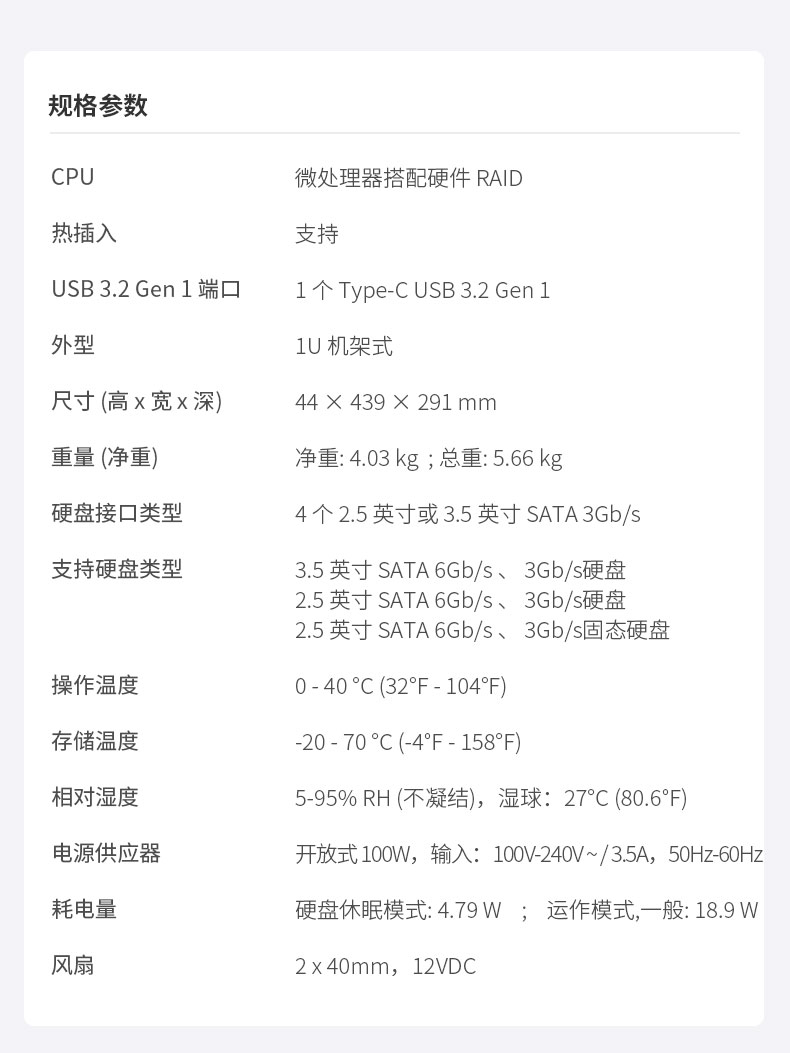 QNAP 威联通 TR-004U 机架式 4盘位USB 3.2 Gen 1 RAID 磁盘阵列外接盒