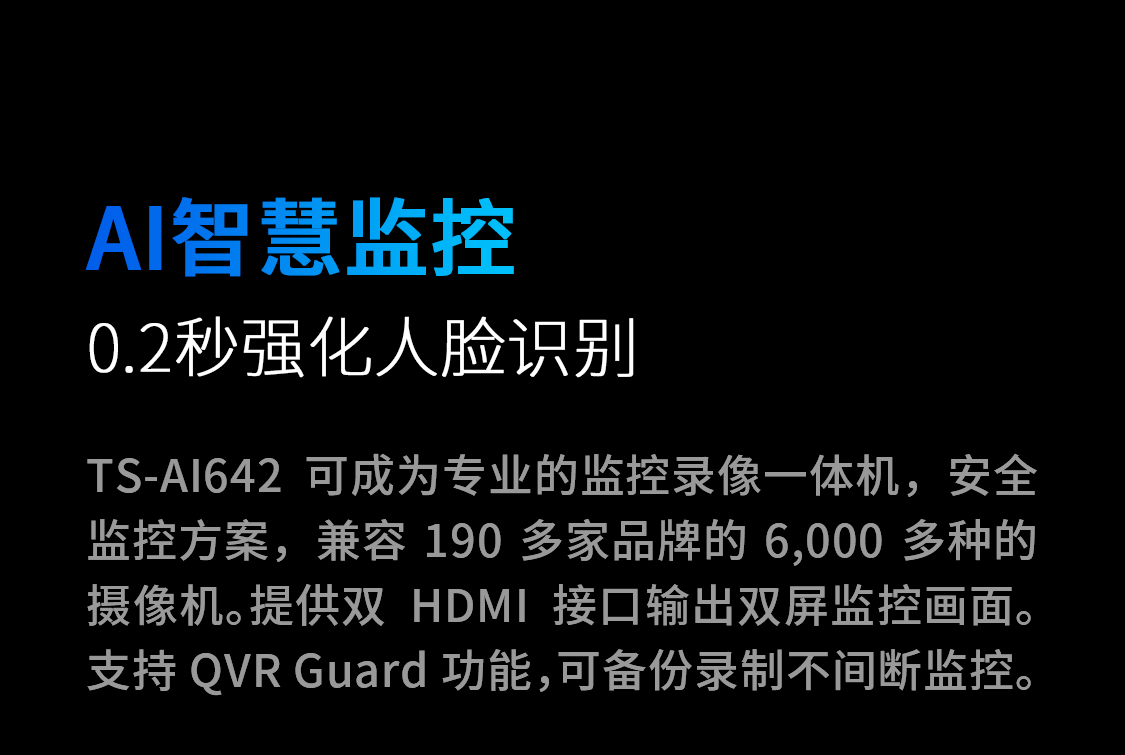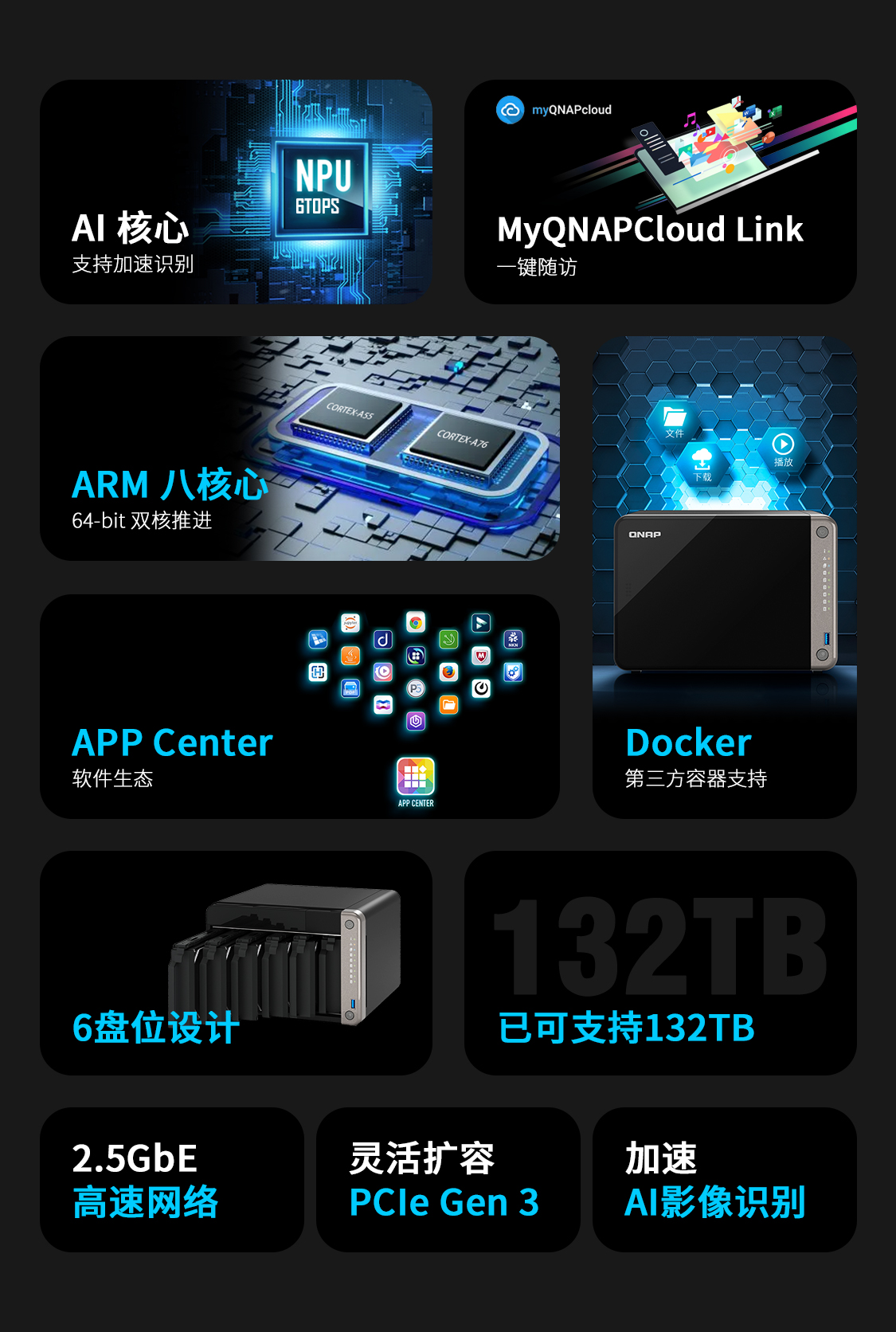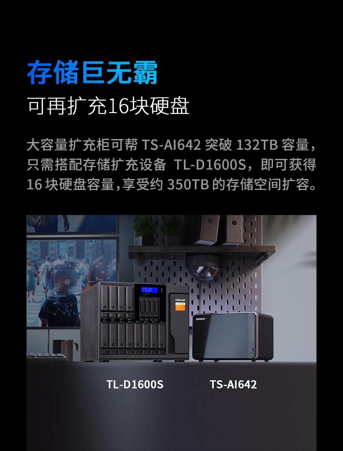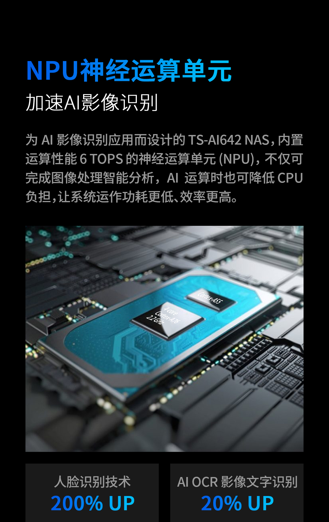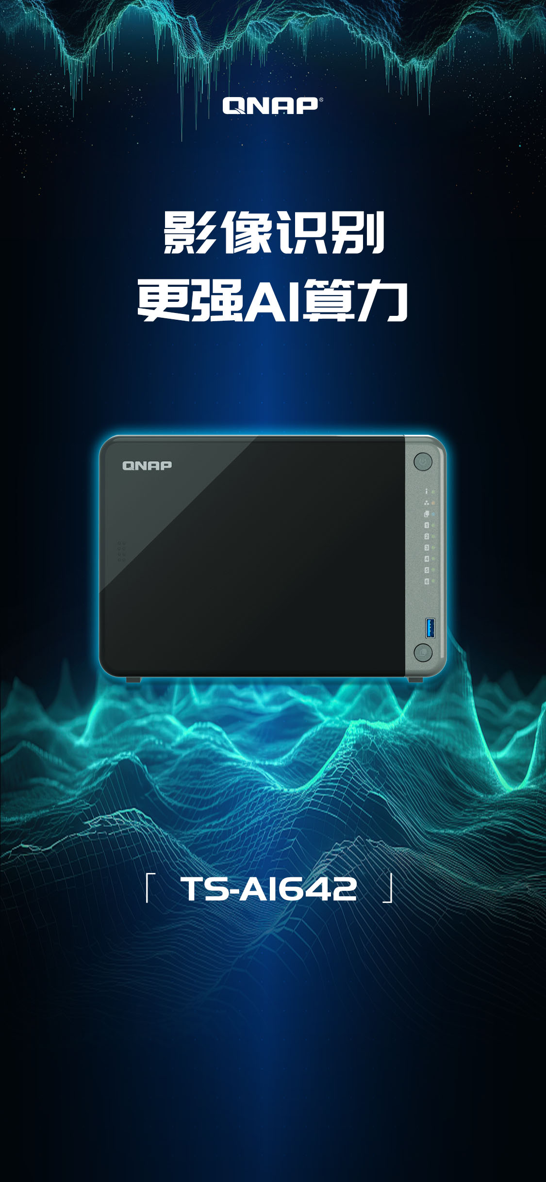 QNAP 威联通 TS-AI642 AI NAS 专用机,低功耗 ARM SoC 处理器内置 NPU 加速 AI 影像识别应用