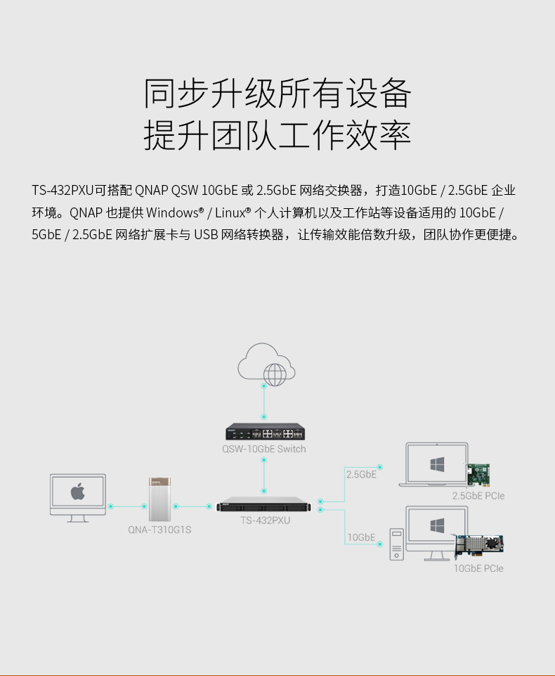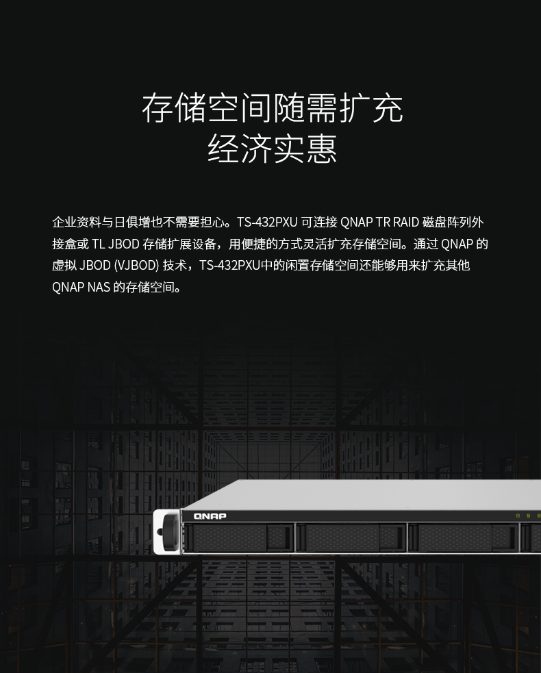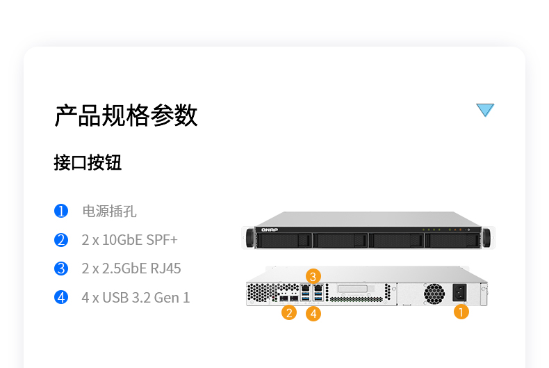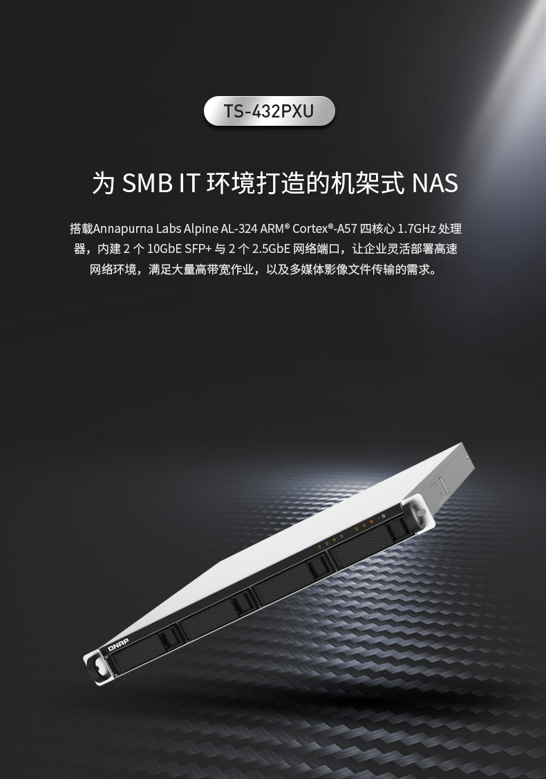 QNAP威联通TS-432PXU-2G 四盘位单电源 配备双 10GbE SFP+ 与双 2.5GbE 网络端口 机架式企业级网络存储NAS
