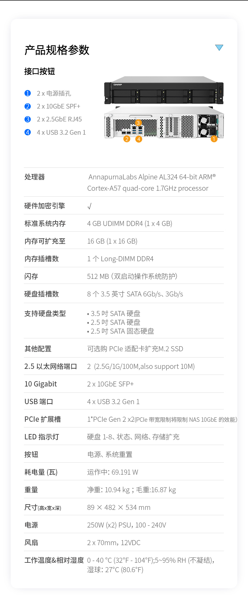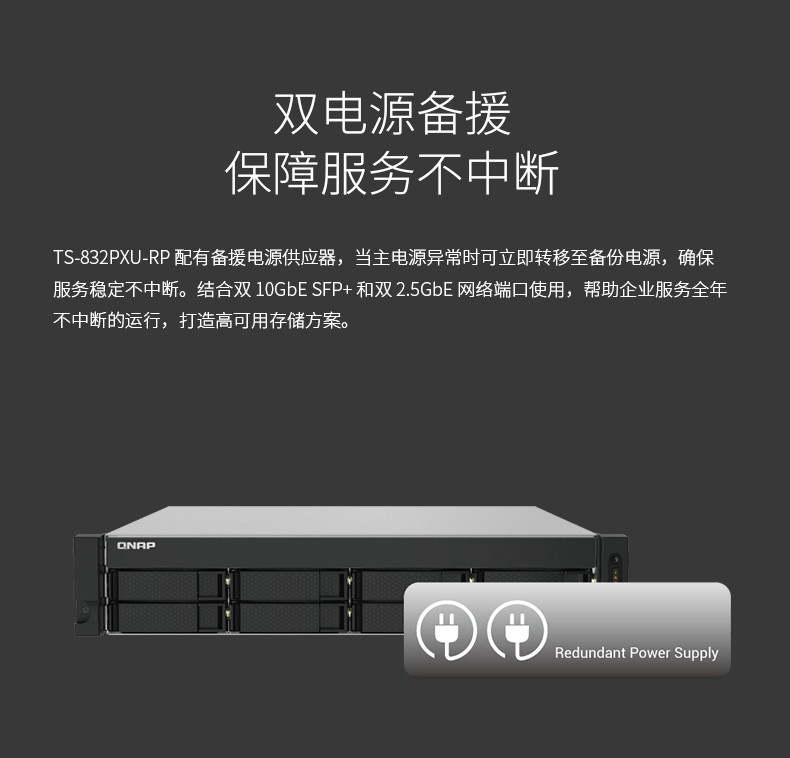 QNAP威联通TS-832PXU-RP-4G八盘位 双电源 配备双10GbE SFP+ 与双 2.5GbE 网络端口 机架式企业级网络存储NAS - QNAP 威联通商城